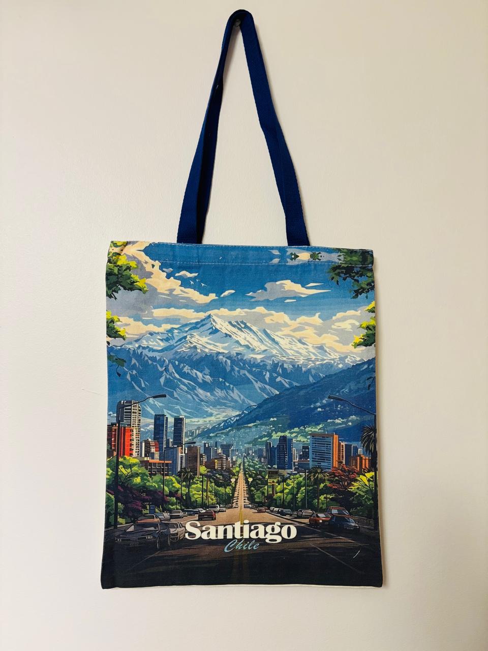 Bolsa de tela inspirada en un paisaje urbano y natural de Santiago.